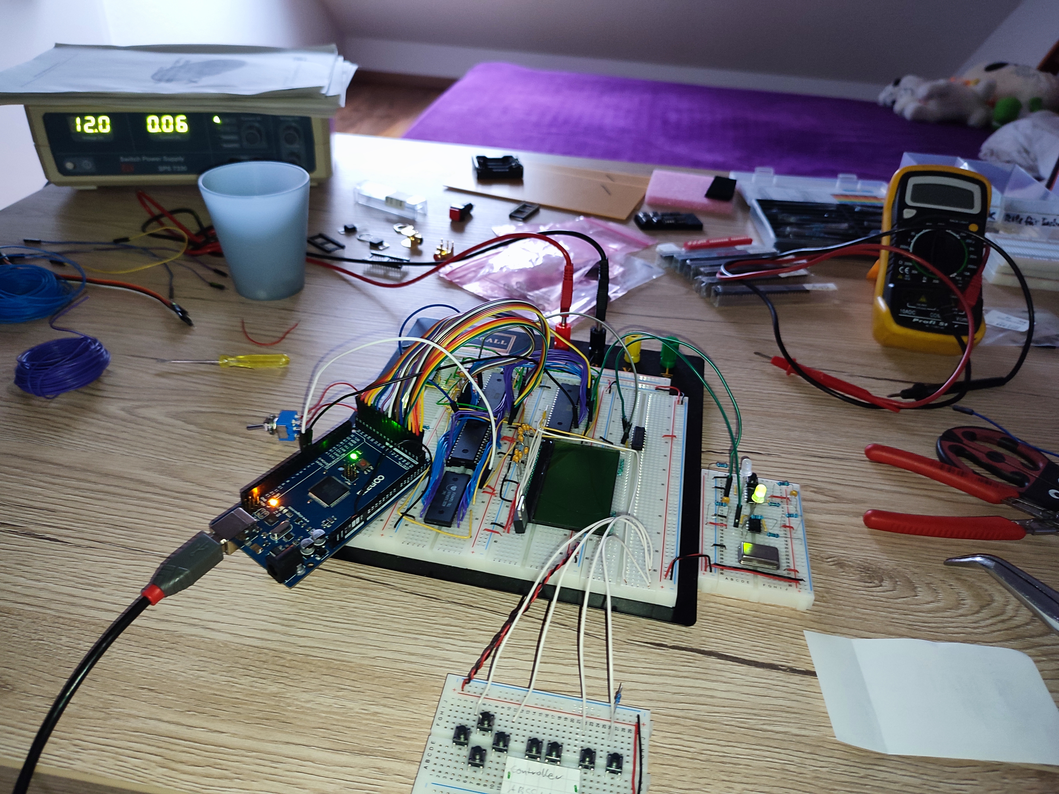 Trotz der vielen Kabel des 16-Bit Adress- und 8-Bit Datenbus ging es gut voran bis ich nach etwa 10 Stunden die Konsole anschalten konnte... Ohne Erfolg.